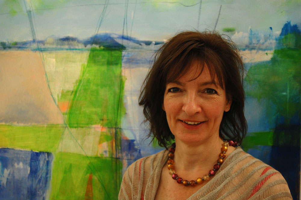Was braucht man um eine Landschaft zu malen? Etwas Farbe, einige Pinselstriche und eine Horizontlinie, würde Angela Krebs-Mildner aus Hannover sagen, die im August im Derneburger Glashaus ihre Gemälde zeigt. Ihre abstrakten Bilder haben immer einen eindeutigen Bezug zur Natur und begnügen sich mit einfachen malerischen Mitteln.
