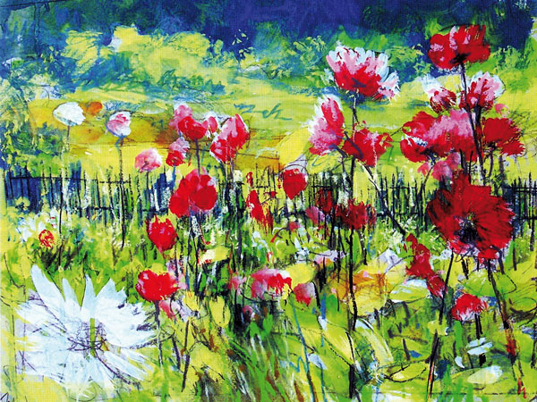 Hans-Georg Wöhle ist ein Maler, der weiß, dass es keine Linien gibt. In seinen Bildern lässt er die Flächen sprechen, die gegeneinanderstoßen, ineinander verlaufen, miteinander harmonieren oder sich in die Schranken weisen. In seinen farbenprächtigen Werken beschäftigt sich der Maler aus Seesen mit Blumen und der Landschaft. Bilder voller überquellender Vielfalt, die jetzt im Derneburger Glashaus zu sehen sind.
