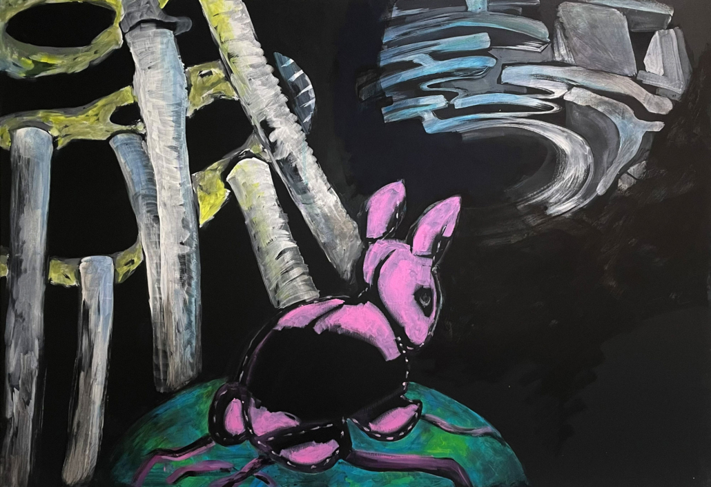 Die Kunst von Kathrin Krumbein ist eine durchinszenierte, radikal unkonforme Sichtweise. Sie liebt die Umdeutung der Realität und die Freiheit der Wahrnehmung. In ihrem Universum versinkt der Kirchturm jedes Mal von Neuem in der Erde, wenn man sich ihm nähert und werfen die Schatten ihre bunten Figuren an die Wände. Sie interessiert sich nicht für die Erklärung des Zaubers, sondern fragt sich, was das Kaninchen im Hut sieht.
